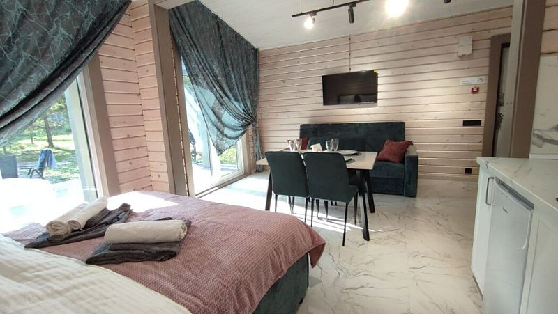Семейный отдыхДостоинстваДушевное место!)) Все на высоте, персонал, атмосфера, уровень комфорта. Еще огромный плюс в том, что дома находятся на достаточном расстоянии друг от друга, никто никого не напрягает) Тишина, сосновый лес вокруг… Отдых получился просто супер!