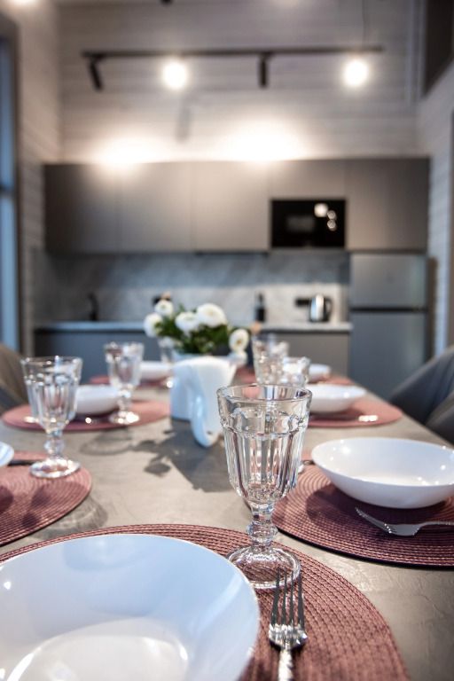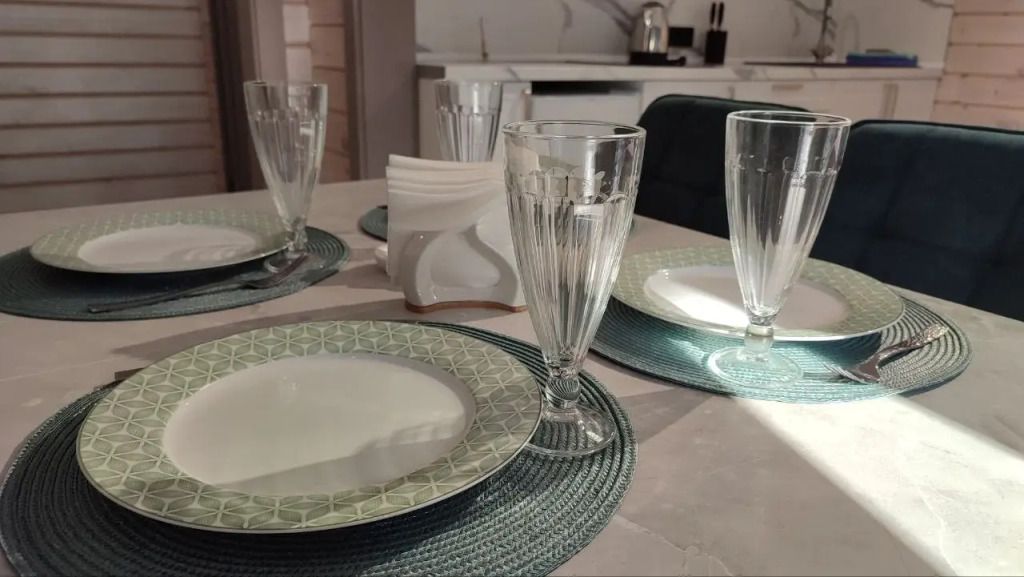 - Полный набор бытовой техники и посуды для удобства на кухне.