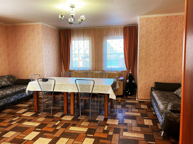 Одноэтажный коттедж, с тремя диванами. В доме есть все необходимое: бытовая техника, мебель, телевизор, посуда, санузел, душевые. Полотенца и постельное белье предоставляется. Также в коттедже есть сауна и за домом мангальный дворик.