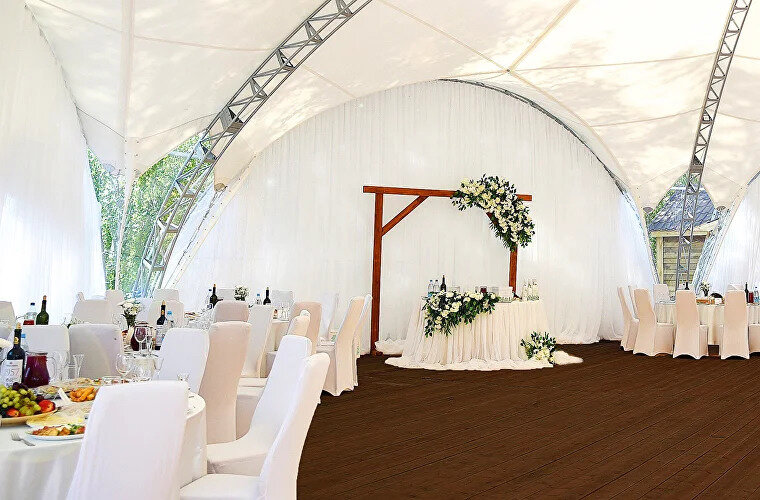 Мероприятие на природе обеспечит вам превосходные фоны для фотосессии: и сам шатер, и окружающие пейзажи будут смотреться очень эффектно.- Площадь белоснежного шатра: 260 м²;