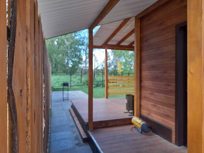 Двухэтажный коттедж. На первом этаже располагается гостиная, кухня, парная и санузел.