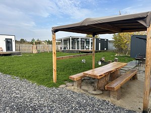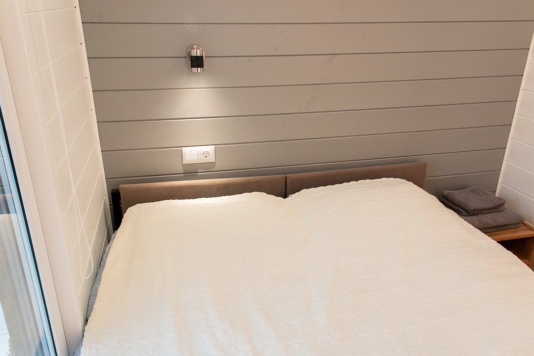 В доме 4 изолированные спальни и кухня гостиная, санузел с душевой кабиной. В доме теплый пол по всему контуру помещений. Подходит для проживания 8 гостей. В доме три двуспальные и две односпальные кровати. За дополнительную плату возможно размещение 2 гостей на раскладушках.