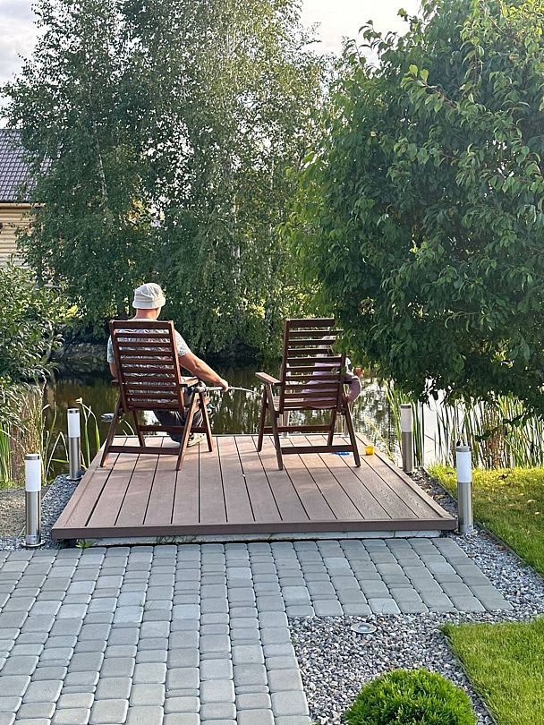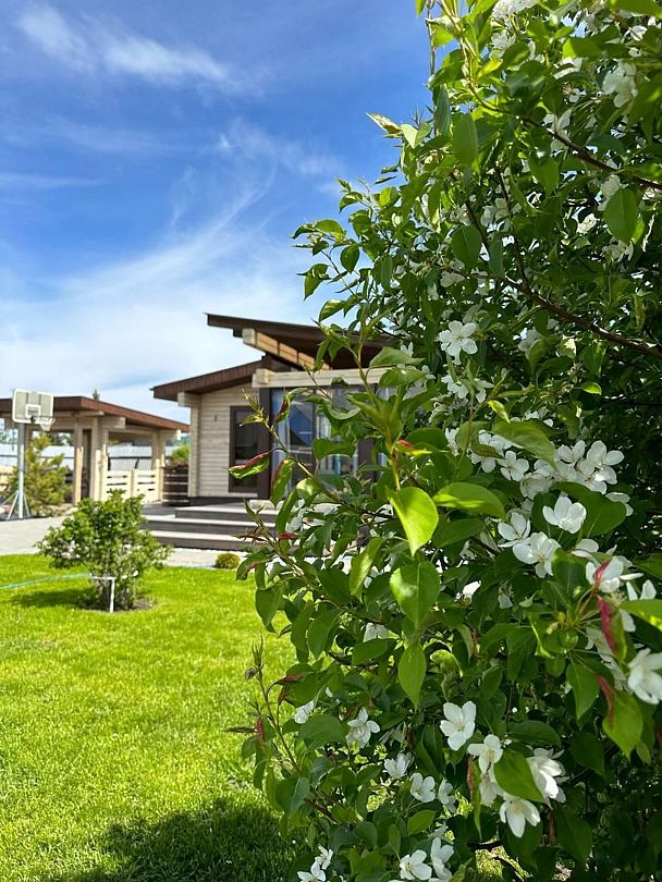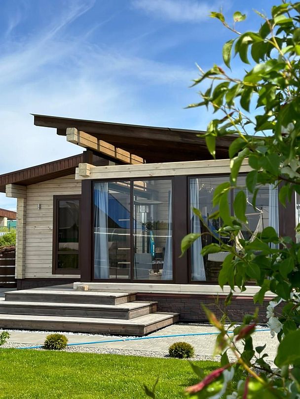 Дизайнерский дом «NICKOL houses&auna» станет идеальным местом для отдыха от городской суеты, где вы сможете насладиться красотой природы и провести время с близкими. Просторная терраса с видом на пруд приглашает вас расслабиться в уютном кресле с чашечкой горячего кофе, наслаждаясь пением птиц и легким ветерком.