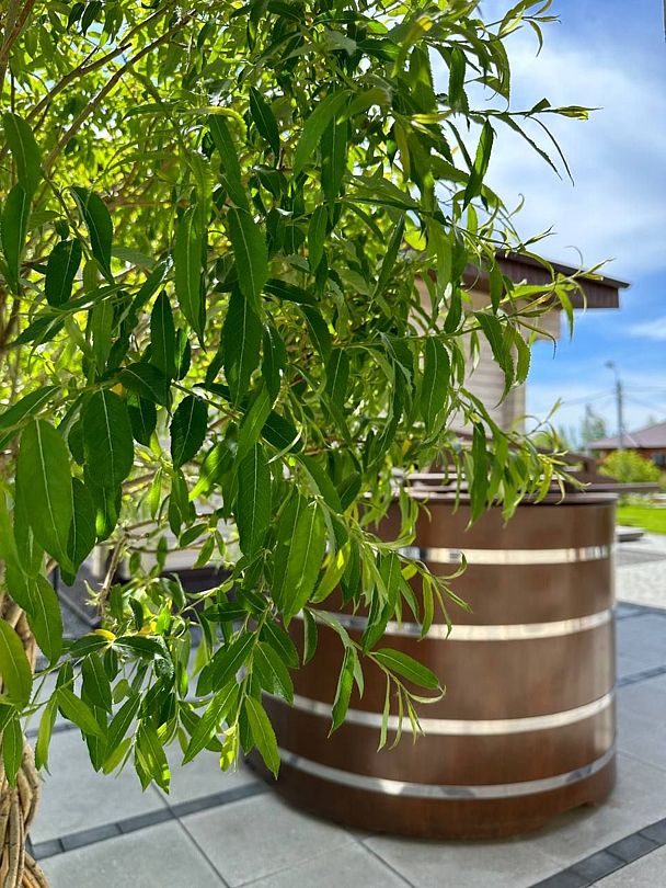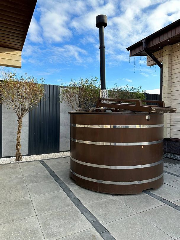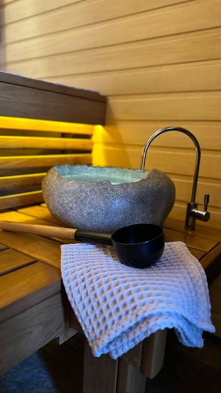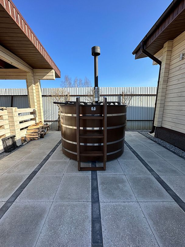 Японская баня фурако, установленная под открытым небом, дарит уникальный опыт парения в гармонии с природой. Теплые воды чана нежно окутывают ваше тело, расслабляя мышцы и успокаивая.