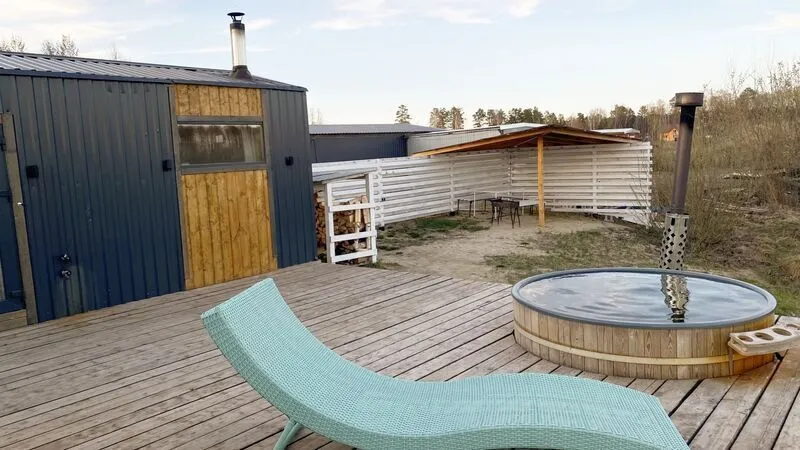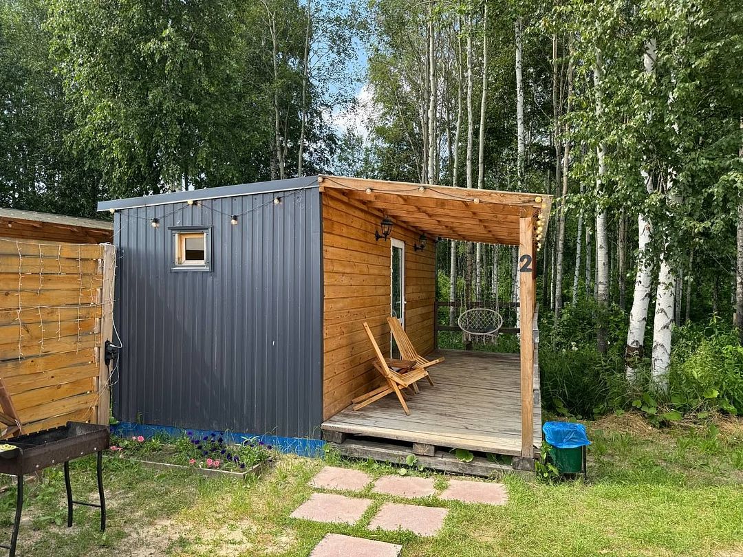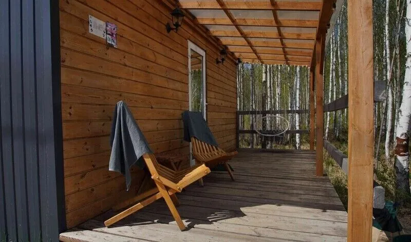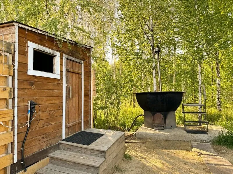 Во дворе дома находится банька и чан с горячей водой. Оплачивается отдельно. Стоимость — 5500 ₽/сутки (безлимит на сутки).