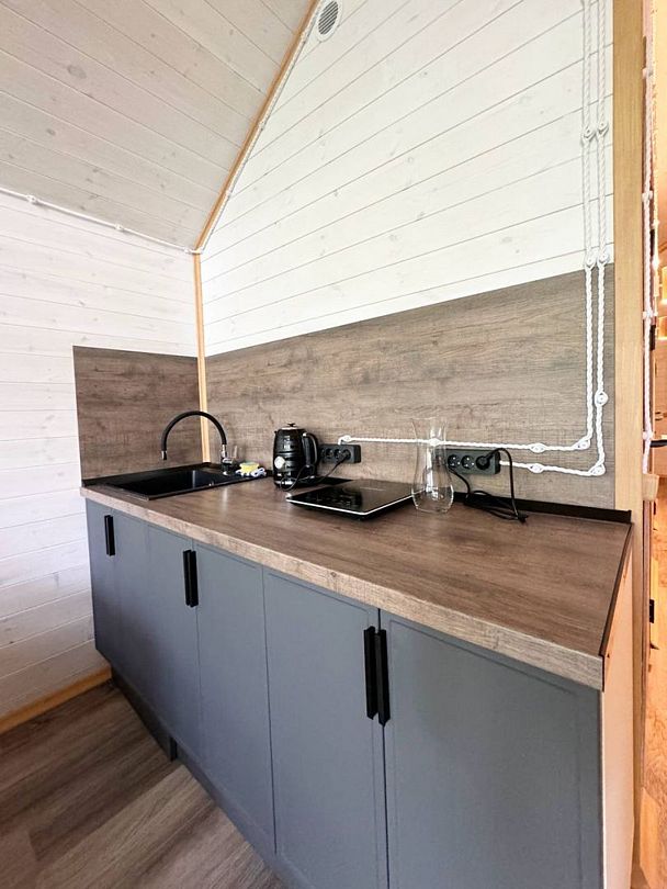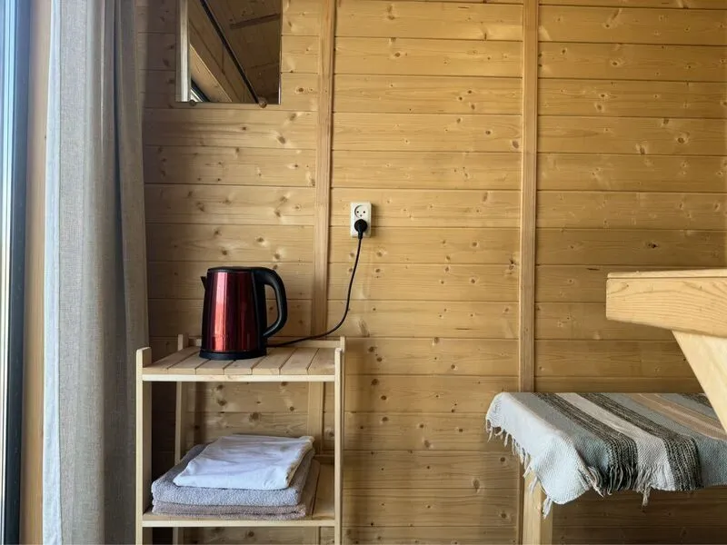 - проживание с небольшой собачкой возможно в семейном домике и домиках на двоих. Доплата 1200 ₽, предоставление для питомца миски, ванночку для лап, полотенце и подстилку;