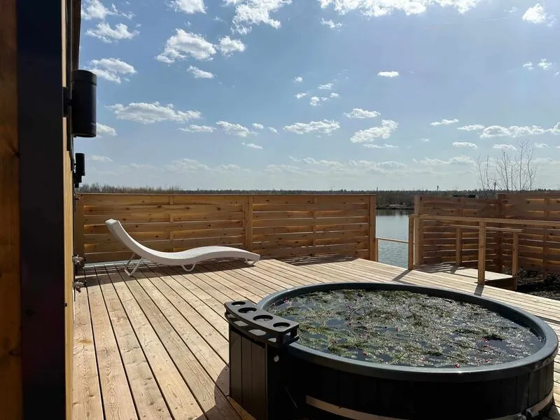 - своя баня у озера;
