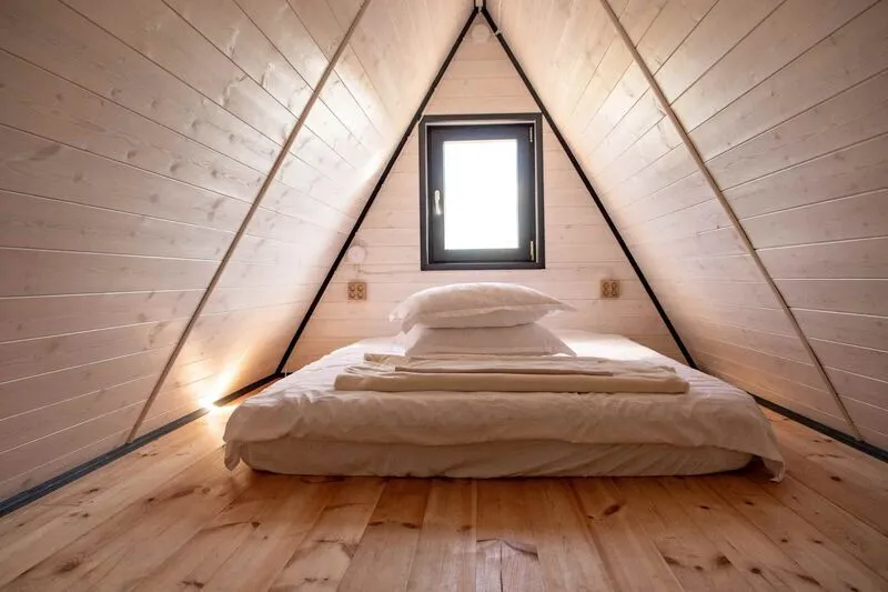 В домике чистота, кровать удобная.