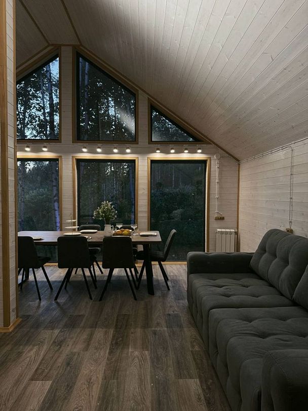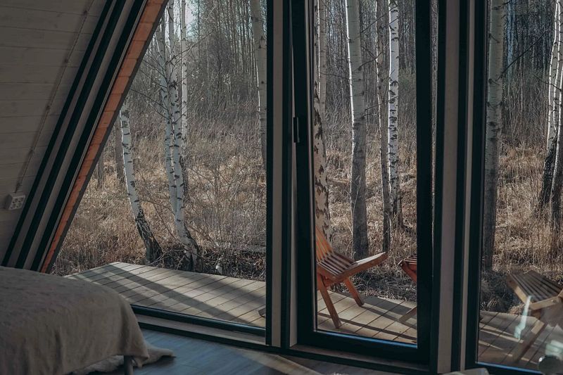 - панорамные окна с видом на лес;