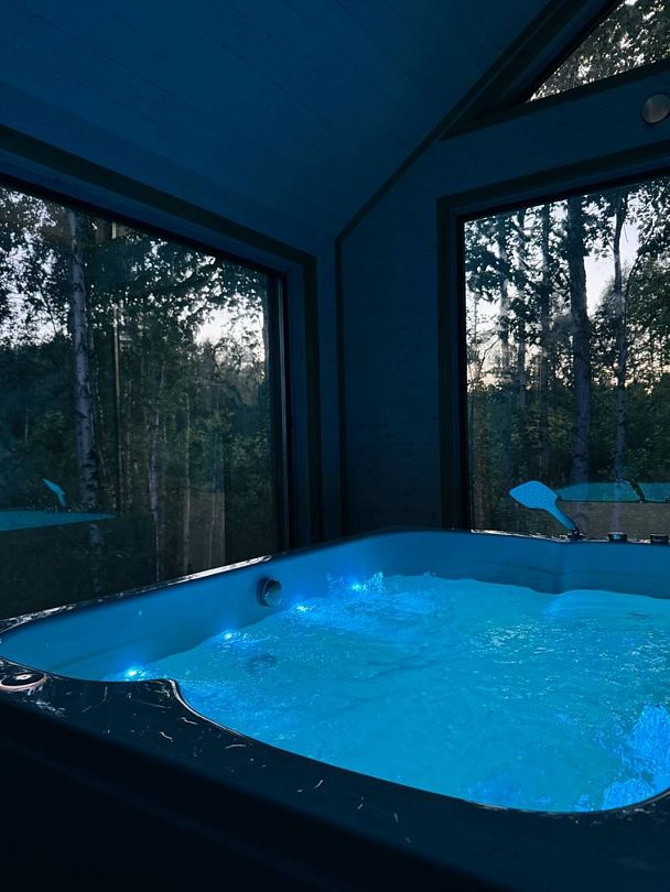 - джакузи на 4 персоны с функцией поддержания температуры воды и переливающейся подсветкой;