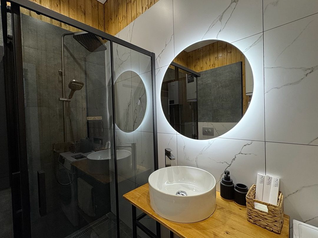 Весь дом оснащен Wi-Fi, а для ваших зарядных устройств есть разъемы type-c и lightning. Для автомобилей предусмотрена парковка на 4 машины под видеонаблюдением, что обеспечивает дополнительную безопасность. Также на территории создана оборудованная мангальная зона, а для любителей банного отдыха предусмотрена современная баня.