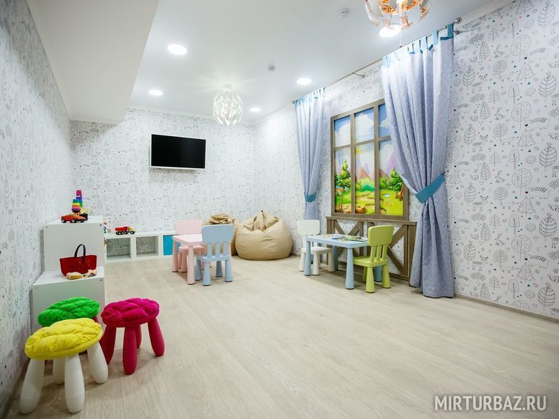 Просторная детская комната расположена на первом этаже гостиницы. Игровая комната оснащена всем необходимым, для приятного и веселого времяпрепровождения. Игровая зона наполнена специальным детским «инвентарем», игрушками и развивающими играми для разных возрастов. Здесь каждый ребенок сможет найти занятие по интересам и окунуться в мир развлечений.