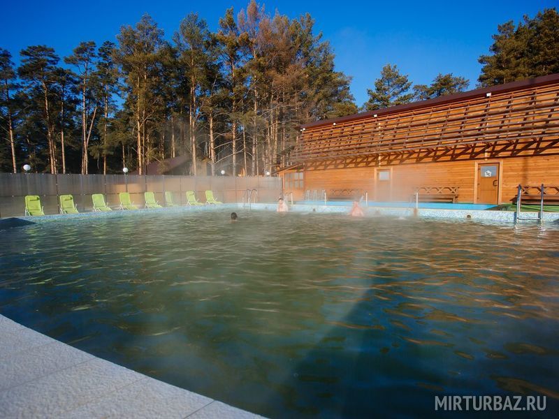 Термальная минеральная вода является природным лечебным средством. Минеральная вода поступает с глубины 1256 м в бассейн 200 куб.м. и соответствует ГОСТу 13273. Купание в этой воде благоприятно влияет на организм — улучшает кровообращение, снижает нервное напряжение и благотворно влияет на кожу.