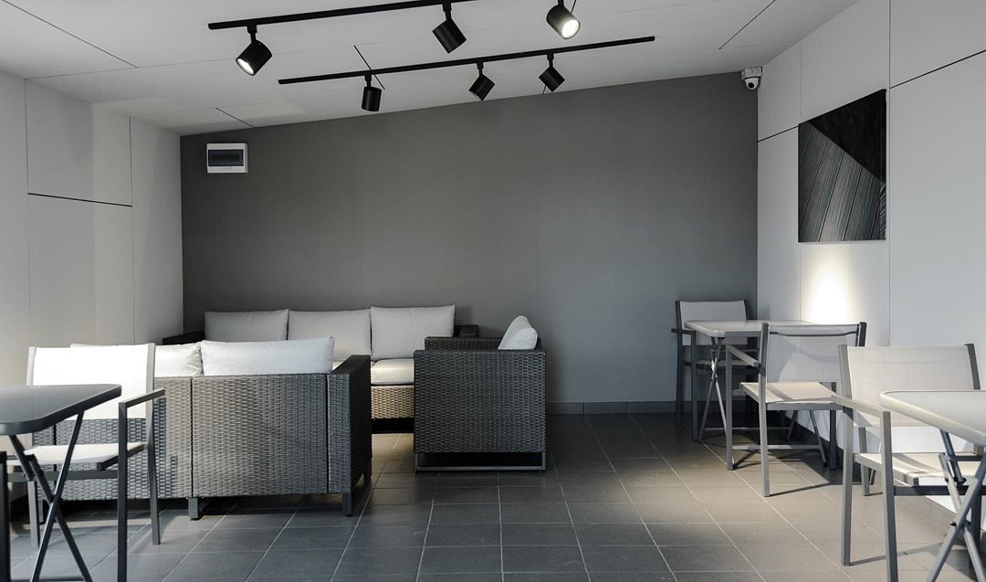 Комфортная раздевалка с индивидуальными шкафчиками и общая комната отдыха рассчитаны на единовременное пребывание не более 14 гостей, что позволяет нам поддерживать атмосферу приватного отдыха в дали от городской суеты.