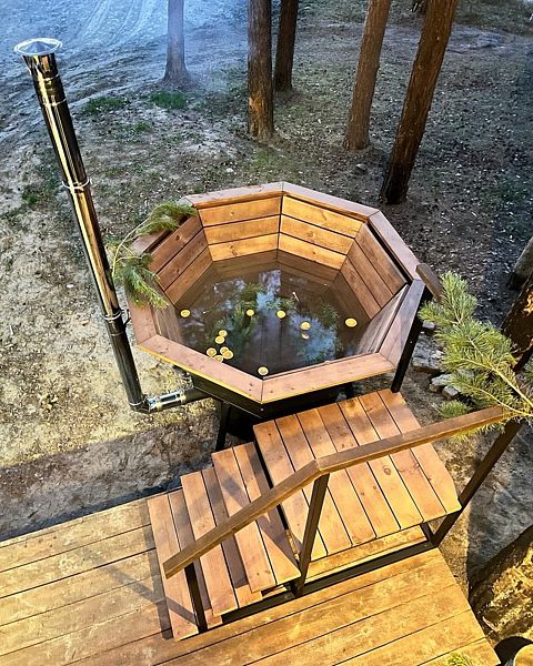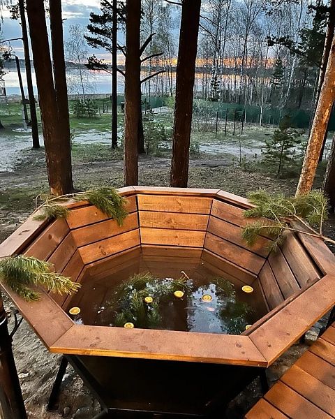 Читать полностьюПарение в банном чане под открытым небом — это погружение в состояние глубокого умиротворения и релакса, где ароматы лесных трав и эфирных масел дополняют благотворное воздействие теплой воды на ваше тело. Представьте, как вы поднимаетесь по специальной лесенке и опускаетесь в чан, окутанный клубами пара, а вокруг шелестят кроны деревьев и мерцают звезды над озером.