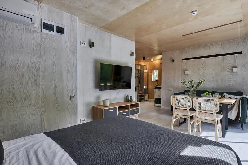 - на 2-4 человека (спальня с большой кроватью и диван в кухне-гостиной);