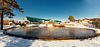 Горячая минеральная вода течет по камню и испаряется благодаря этому можно получить качественные ингаляционные процедуры.