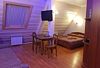 Это отдельная раздевалка, с индивидуальными шкафчиками, вместимостью на ограниченное количество человек. Имеется своя сауна, в которой можно париться вениками, джакузи с минеральной водой, душевые кабинки, сан узел, бодрящие обливные ведра. Для развлечений есть бильярд, телевизор, акустическая система. Также есть большой дубовый стол на компанию, еду можно заказывать из ресторана.