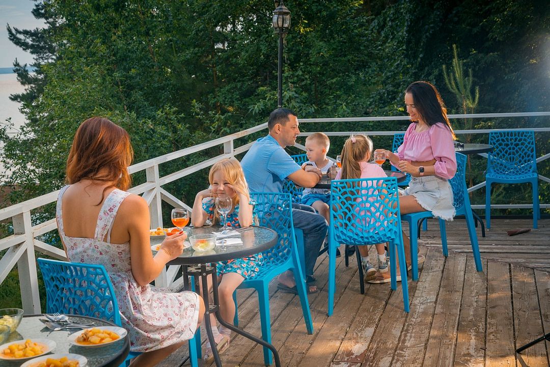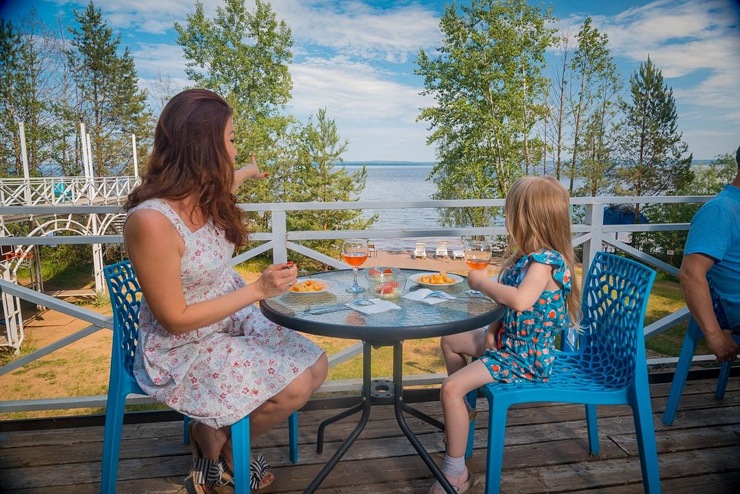В летний период на берегу работает уютное кафе. Для удобства гостей рядом с корпусами и домами предусмотрены мангальные зоны, где отдыхающие могут приготовить шашлык, овощи на гриле, пожарить сосиски.