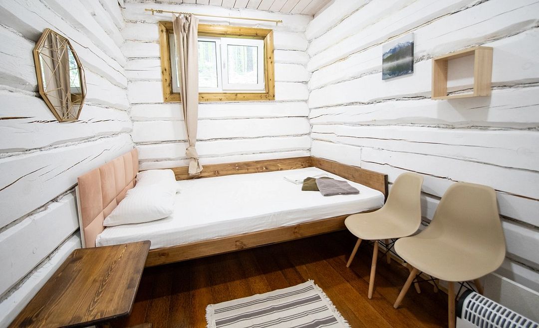 Во всех номерах и домах имеется водоснабжение, газовое отопление, санузел с туалетом и душем (кроме Шишкиного дома) и wi-fi. Установлена необходимая мебель в зависимости от категории – двуспальные или односпальные кровати, диваны или кресла-кровати, места для хранения вещей. Некоторые дома оборудованы персональной кухней с посудой и бытовой техникой.