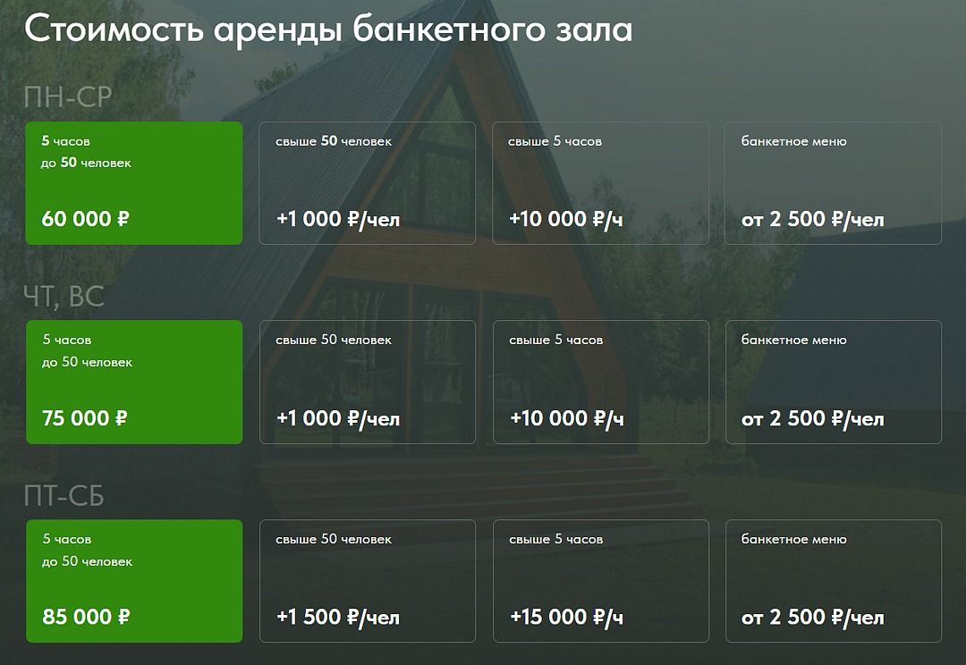 - подходит для свадеб: зона выездной регистрации, банкетное пространство, танцы, фотозоны;