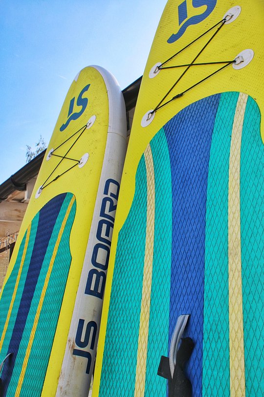 Можно взять САП-доски и устроить расслабляющую прогулку по воде — отличный способ провести время активно и с удовольствием.