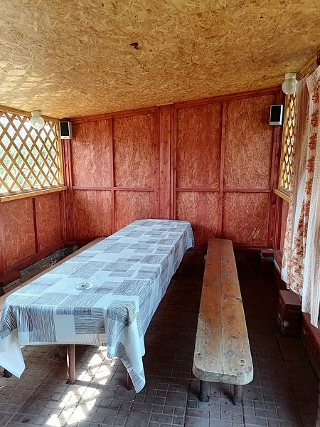 - Беседка-терраса — 600 ₽/час. Беседка-терраса вместимостью до 12 человек . Оснащена мангальной зоной, электроосвещением.