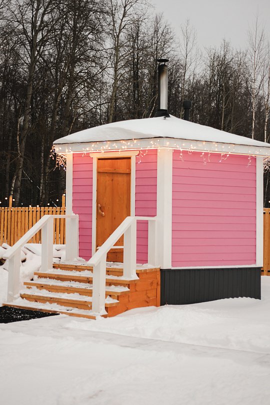 Инфраструктура: чан, шапочкиНа живописной территории находится традиционная русская баня, расположенная рядом с уютным банным чаном. Для любителей настоящего пара предлагается выбор ароматных веников — их ассортимент можно уточнить у администрации. Гости могут посетить баню как отдельно, так и в комплексе с банным чаном.