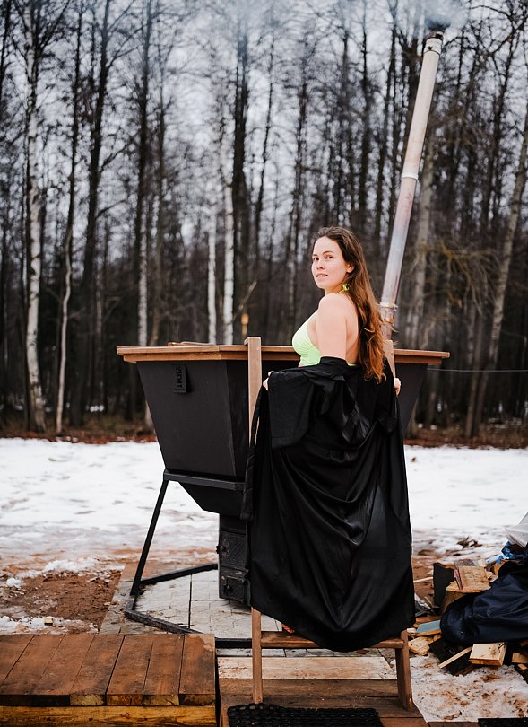 Погрузитесь в атмосферу расслабления в банном чане под открытым небом — он доступен в любое время года! Хвоя и травы в воде дарят не только неповторимый аромат, но и укрепляют иммунитет. Возможно комплексное бронирование чана вместе с баней.