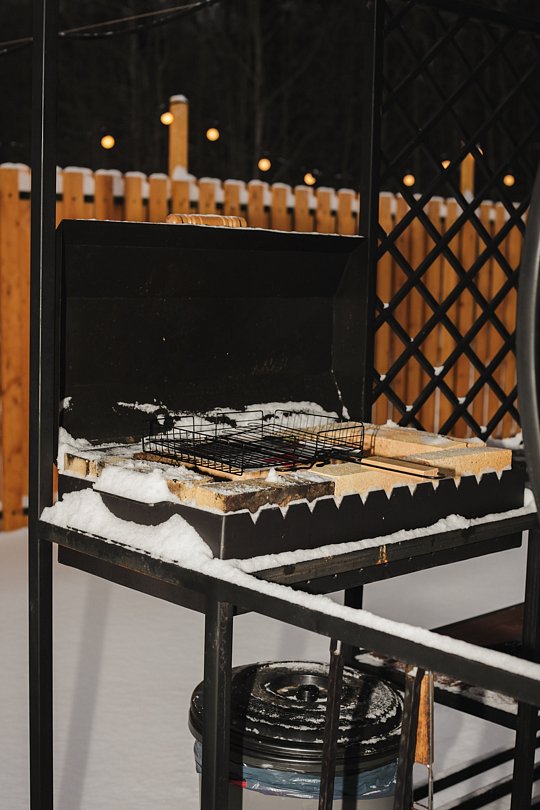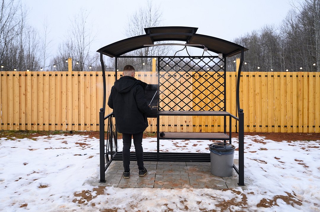 На территории есть крытый мангал — идеальное место для приготовления шашлыков в любую погоду. Все необходимое — решетки и шампуры — уже предусмотрено для вашего удобства.