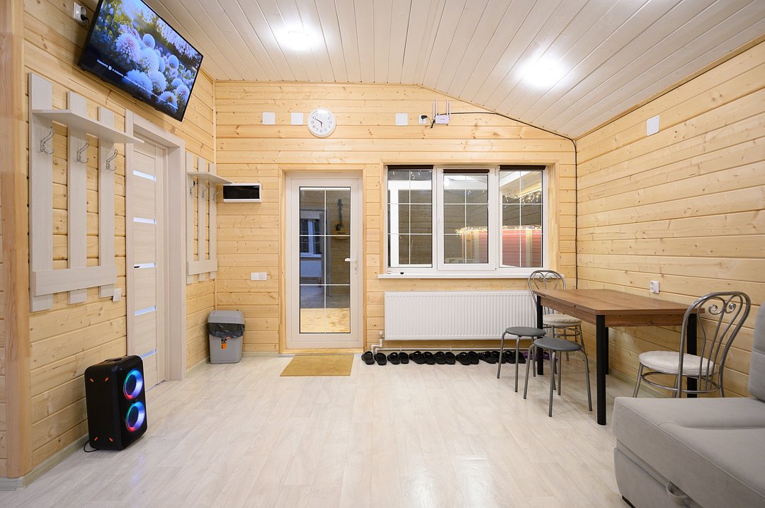 Отдельная спальня обеспечит комфортный сон, а совмещенный санузел оснащен всеми необходимыми гигиеническими принадлежностями. На территории домика расположены мангальная зона и терраса, где можно насладиться отдыхом на свежем воздухе в приятной компании.