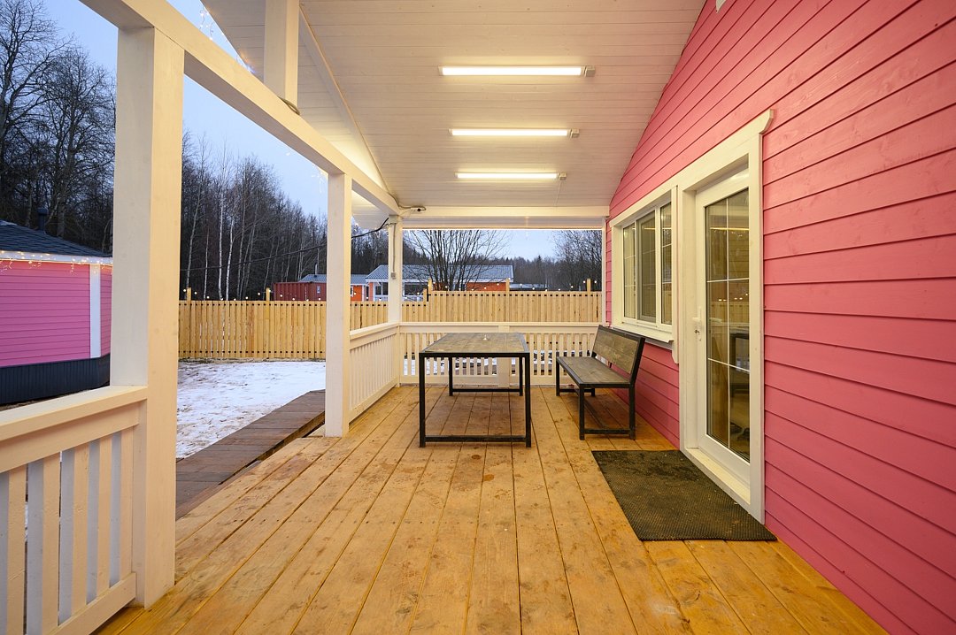 На территории дома обустроены крытая мангальная зона с решетками и шампурами — для приготовления шашлыков в любую погоду — и уютная терраса для отдыха на свежем воздухе. Парковка расположена прямо на участке. В окружении природы расположена русская баня и банный чан под открытым небом, доступные круглый год. Использование хвои и трав в воде создает неповторимый аромат, укрепляет иммунитет и дарит полное расслабление.