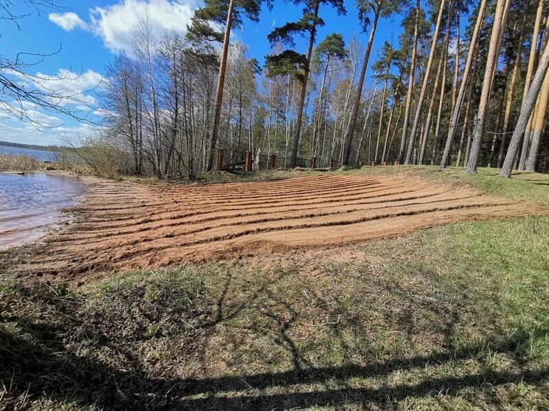 Место для установки автодома. Электричество рядом. Вода — только в канистрах. Место для слива канализации имеется.