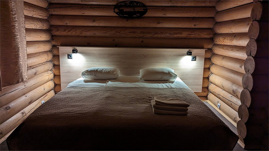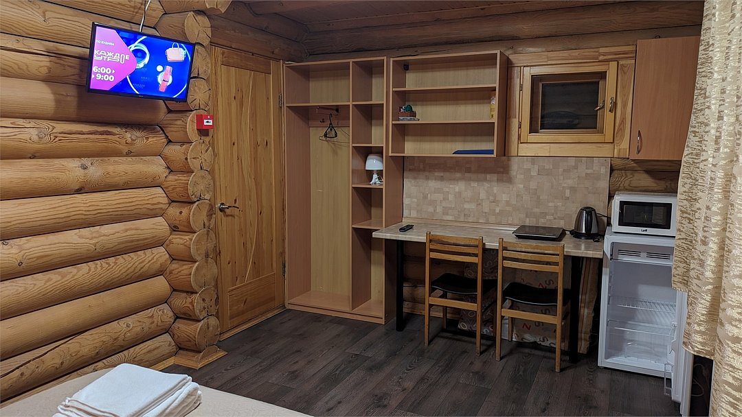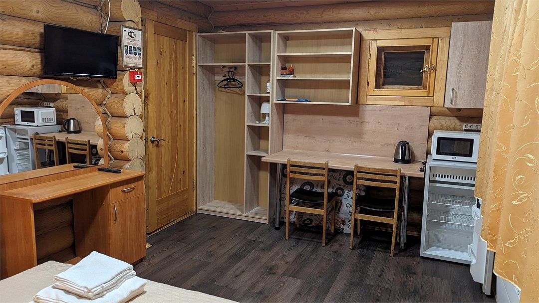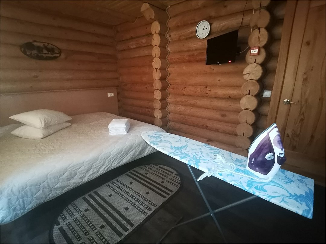 Уютный 2-местный номер в деревянном домике. При необходимости комплектуется дополнительным детским местом (раскладушка с матрацем + постельное белье).