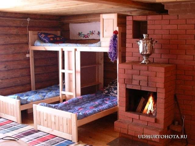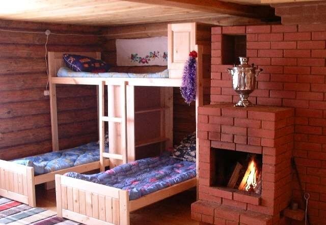 Новый деревянный дом, просторная комната на 6 человек с камином.