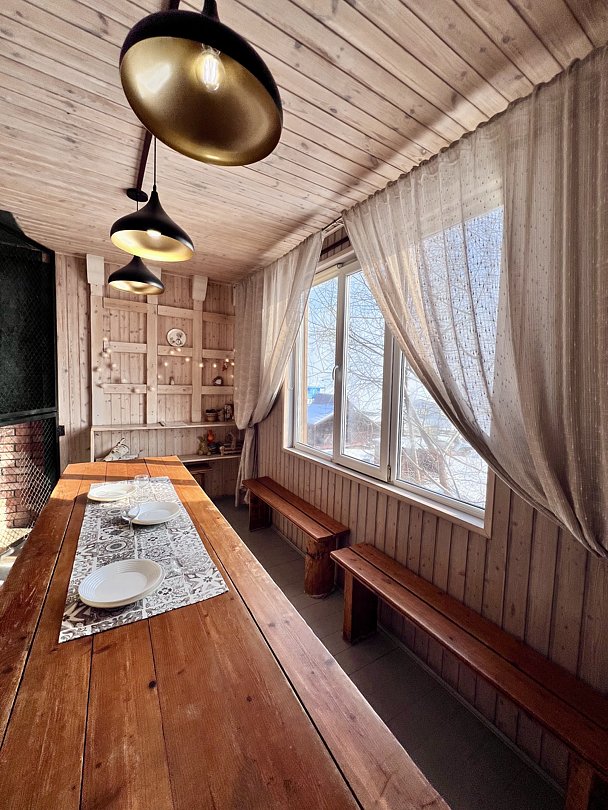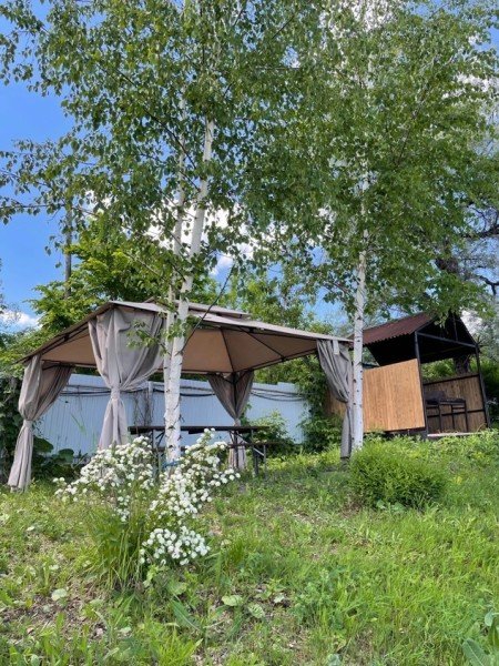 Во дворе дома находится мангал и беседка для отдыха. Рядом расположена настоящая баня на дровах и кедровый чан с травами. Подходит для отдыха большими семьями или компаниями.