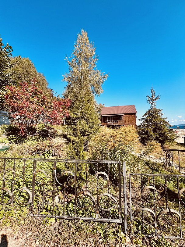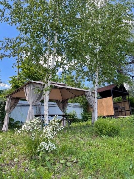 Перед домом зона кострища и беседка с мангалом. В доме просторная столовая, спальная комната, санузел с душем, унитазом и раковиной. Рядом расположена настоящая баня на дровах и кедровый чан с цветами и травами.