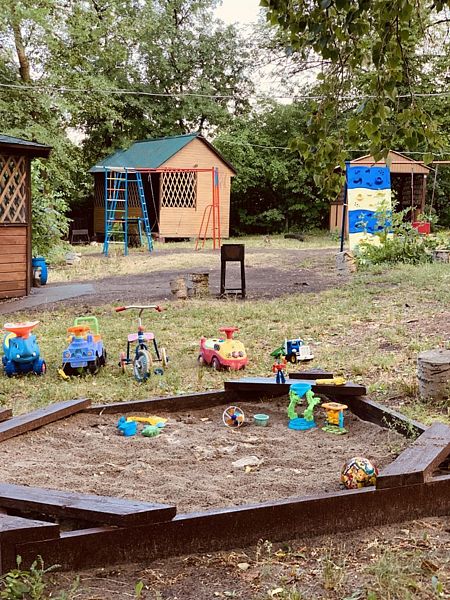 Детская площадка и песочница. Рядом с домом настоящая русская баня на дровах и банный чан с цветами и травами за дополнительную плату.