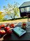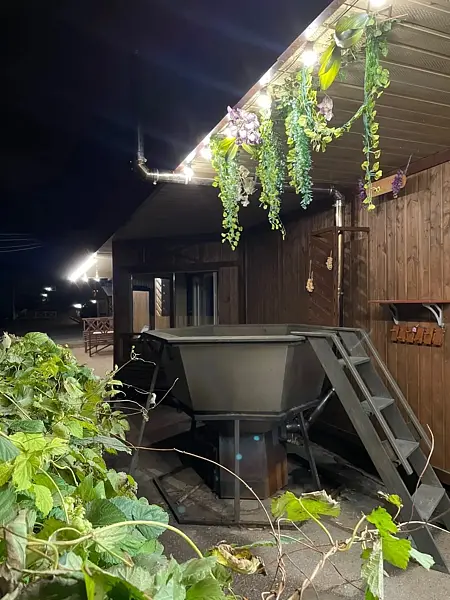 Рядом с домом настоящая русская баня на дровах и банный чан с цветами и травами.