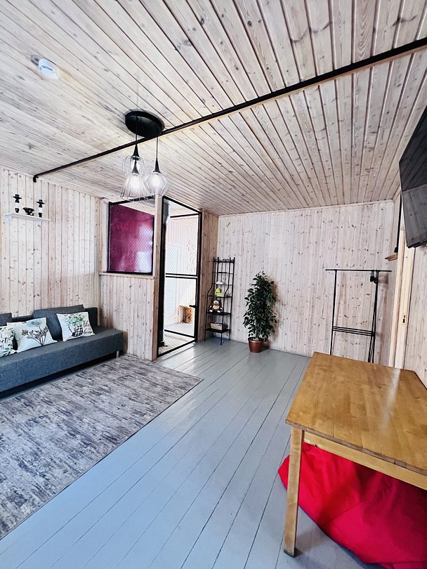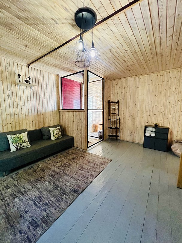 Просторная столовая, зал, спальня и санузел с раковиной и унитазом. Душ с отдельного входа в дом. В доме есть кондиционер, большой телевизор, холодильник, свч, чайник, мультиварка , электрическая плитка, тостер, посуда, столовые приборы. Гостям предоставляется постельное белье, полотенца, гель для душа .