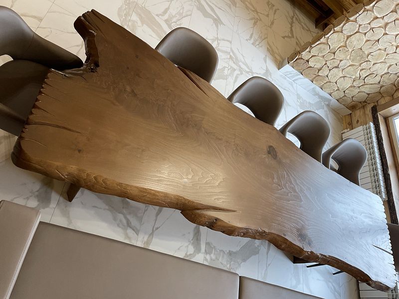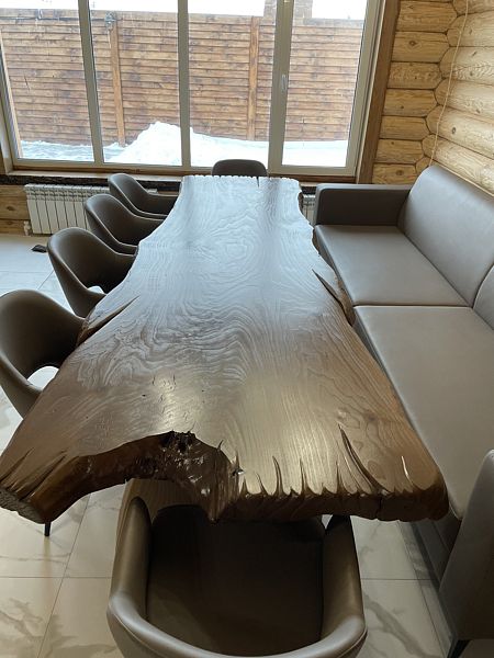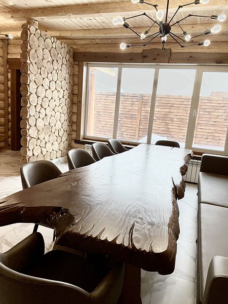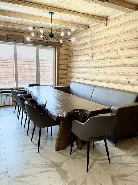 - обеденная зона с большим столом и удобной деревянной мебелью;
