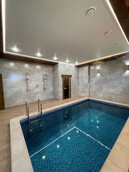Тип бассейна: крытый бассейнВода в бассейне: подогреваемый бассейнТемпература в бассейне: 26 °CРазмеры: 2.5 x 5.5 мКрытый бассейн в парной 2