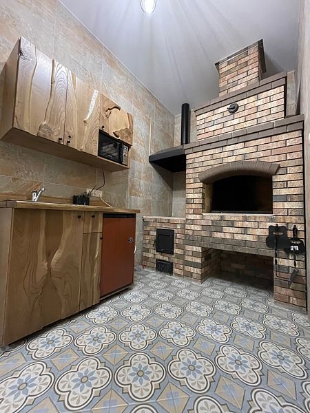 А главной изюминкой Коттеджа № 2 является зона барбекю, установленная прямо внутри дома.