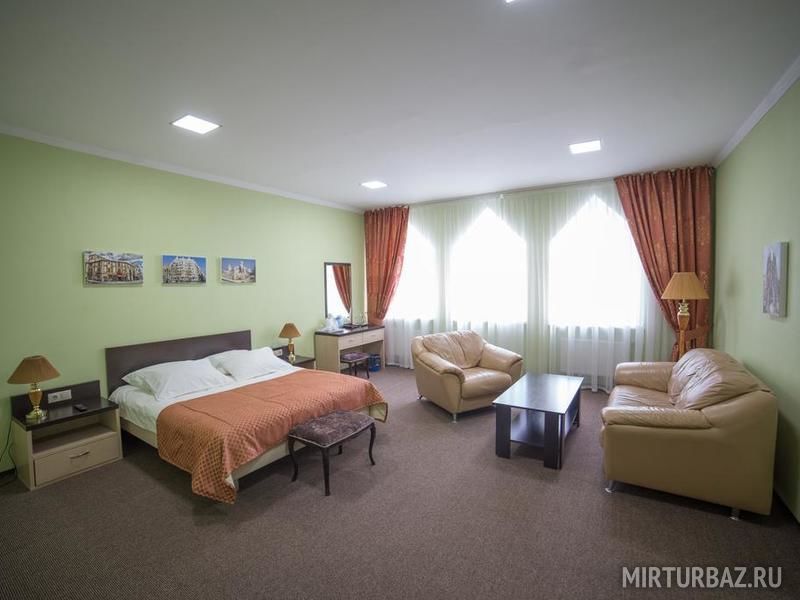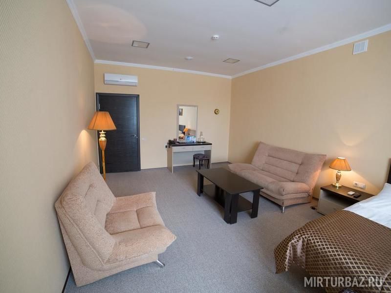 Полулюкс с гостиной зоной оборудован кондиционером. В числе удобств телевизор с плоским экраном, мини-бар и место для работы с письменным столом. Гостям бесплатно предоставляются принадлежности для чая/кофе. Ванная комната укомплектована халатами, тапочками и феном.