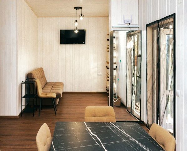 Дом общей площадью 56 кв.м и террасой 12 кв.м располагает собственной мангальной зоной. Он оснащен теплым полом, что обеспечивает комфорт круглый год, независимо от погоды.