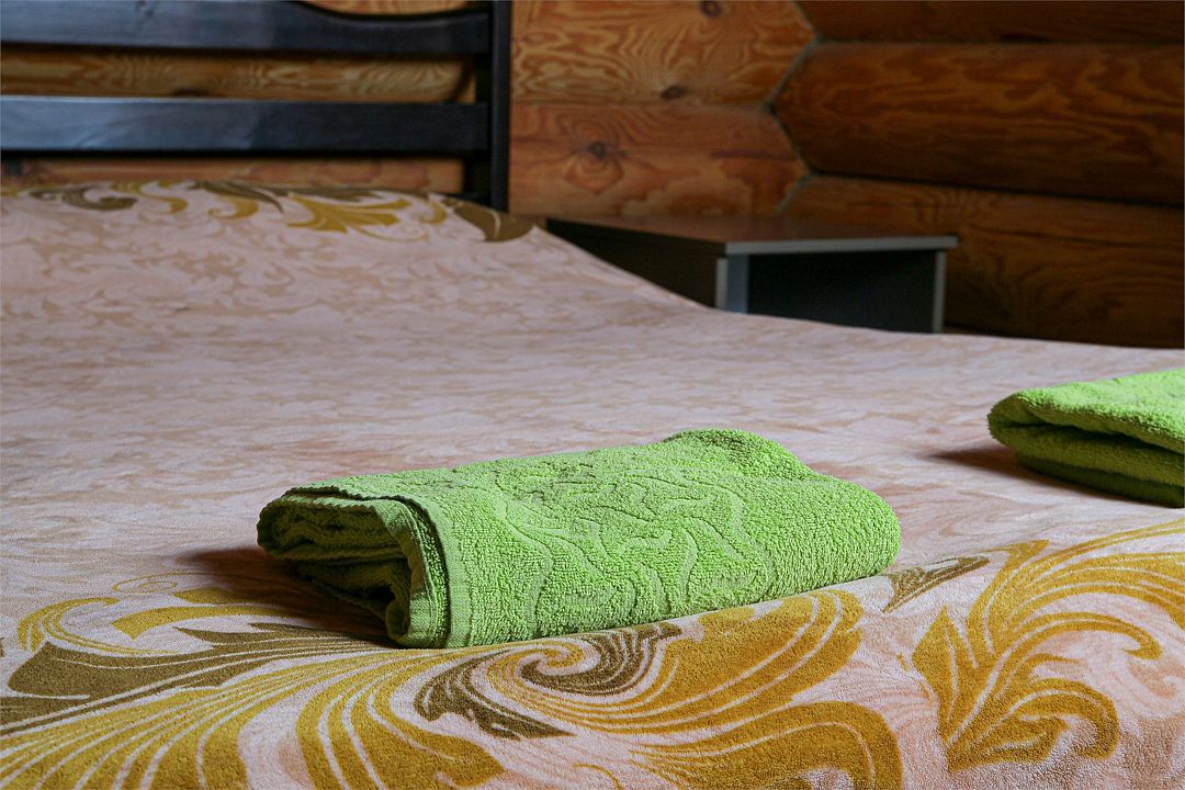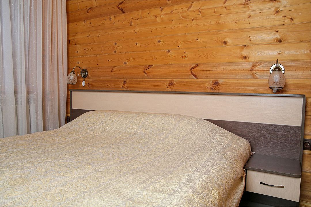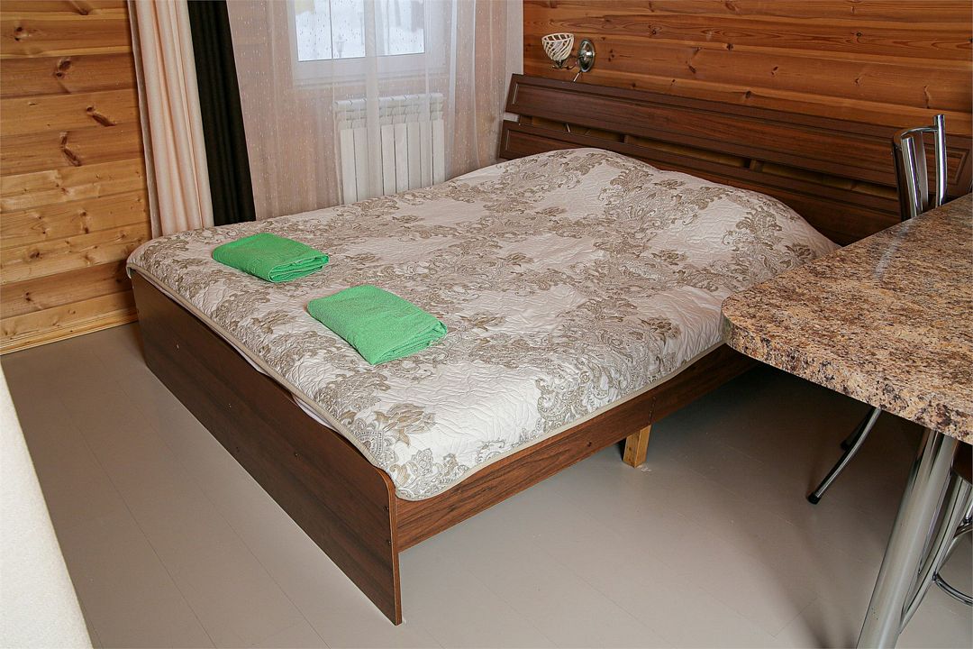 Небольшой, но очень уютный номер на двоих. В домике две односпальные или большая двуспальная кровать.