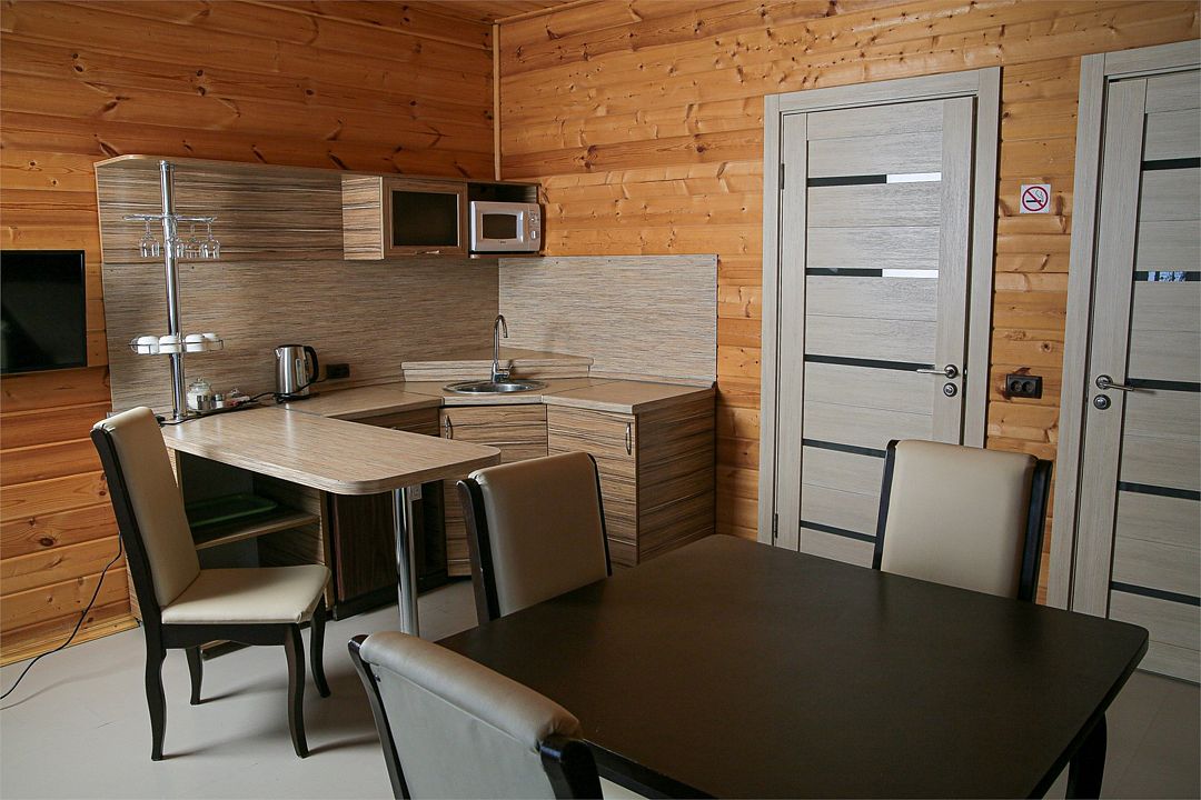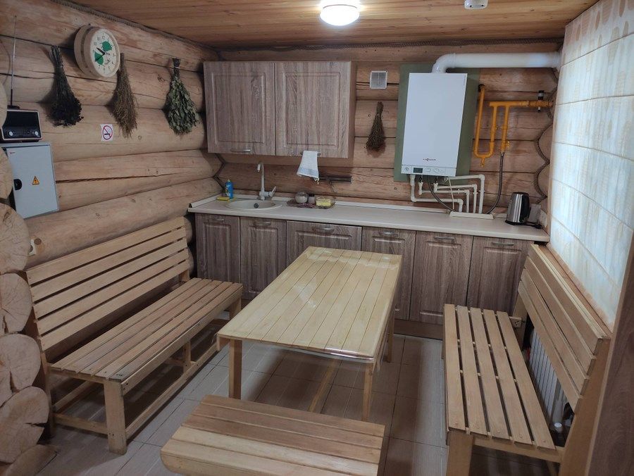 Гостевой комплекс предлагает аренду бани, в которой гостей встречает уютный аромат древесины. Здесь имеется отдельная комната отдыха с мини-кухней, а также душевая кабина и санузел для полного комфорта.