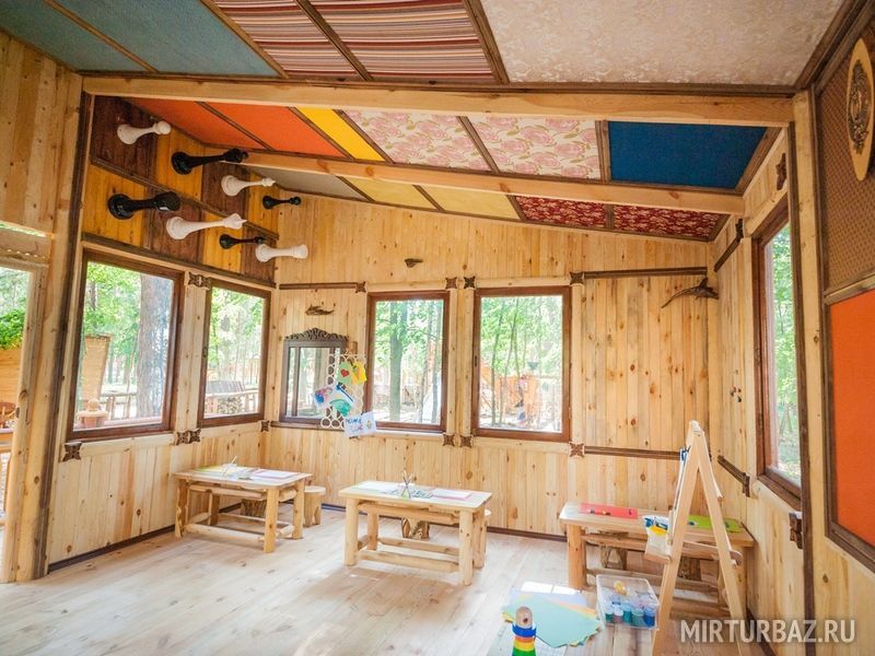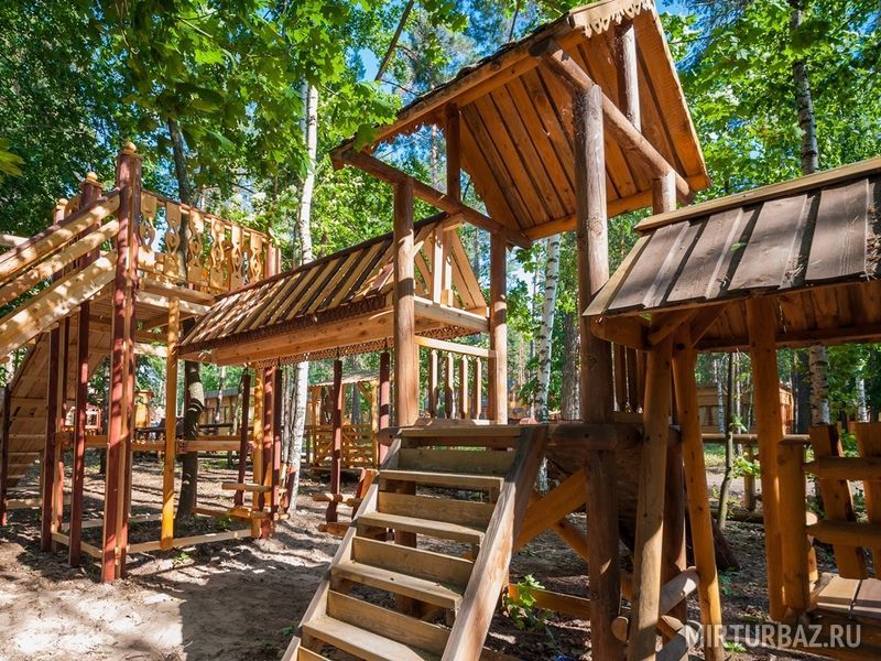 Долгая российская зима истощает организм ребенка, для роста и правильного развития ему требуются витамины, полноценное питание и подвижные игры на свежем воздухе. Специально для маленьких постояльцев построена детская игровая площадка в стиле русских народных сказок. Для маленьких бояр и боярушек на площадке установлены не только качели, горки, песочницы, но и большая шахматная доска, на которой они сами смогут оказаться в роли фигур.