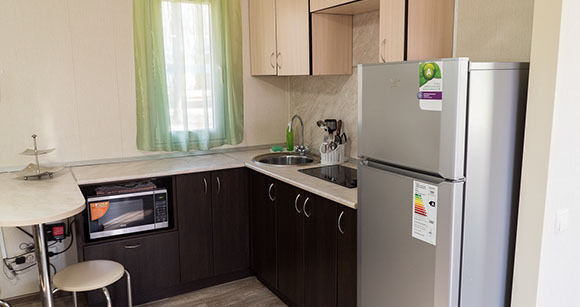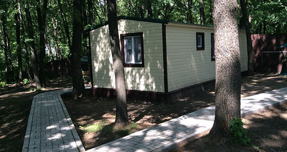 Уютный мобильный дом с кондиционером построенный по современным технологиям для летнего отдыха до 6 человек спальных мест. Рядом с домом располагается беседка с зоной для барбекю.