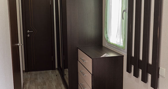 - Изолированная спальня с двумя односпальными кроватями.